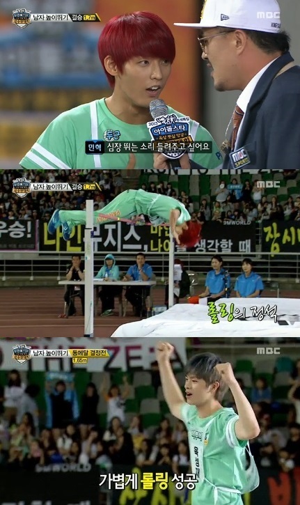 < He had achieved medals in all three categories – Gold medal in high jump, silver for 100m sprint and bronze for the relay run, but he still shows a ‘starved’ look. Lee Minhyuk laughed, “I didn’t know when I’ve become like this. I started out thinking it as a fun game but it turned into a competition instead. In the past, I had played with futsal players from the national league, and we won. In a high school futsal competition, our team won too.” >